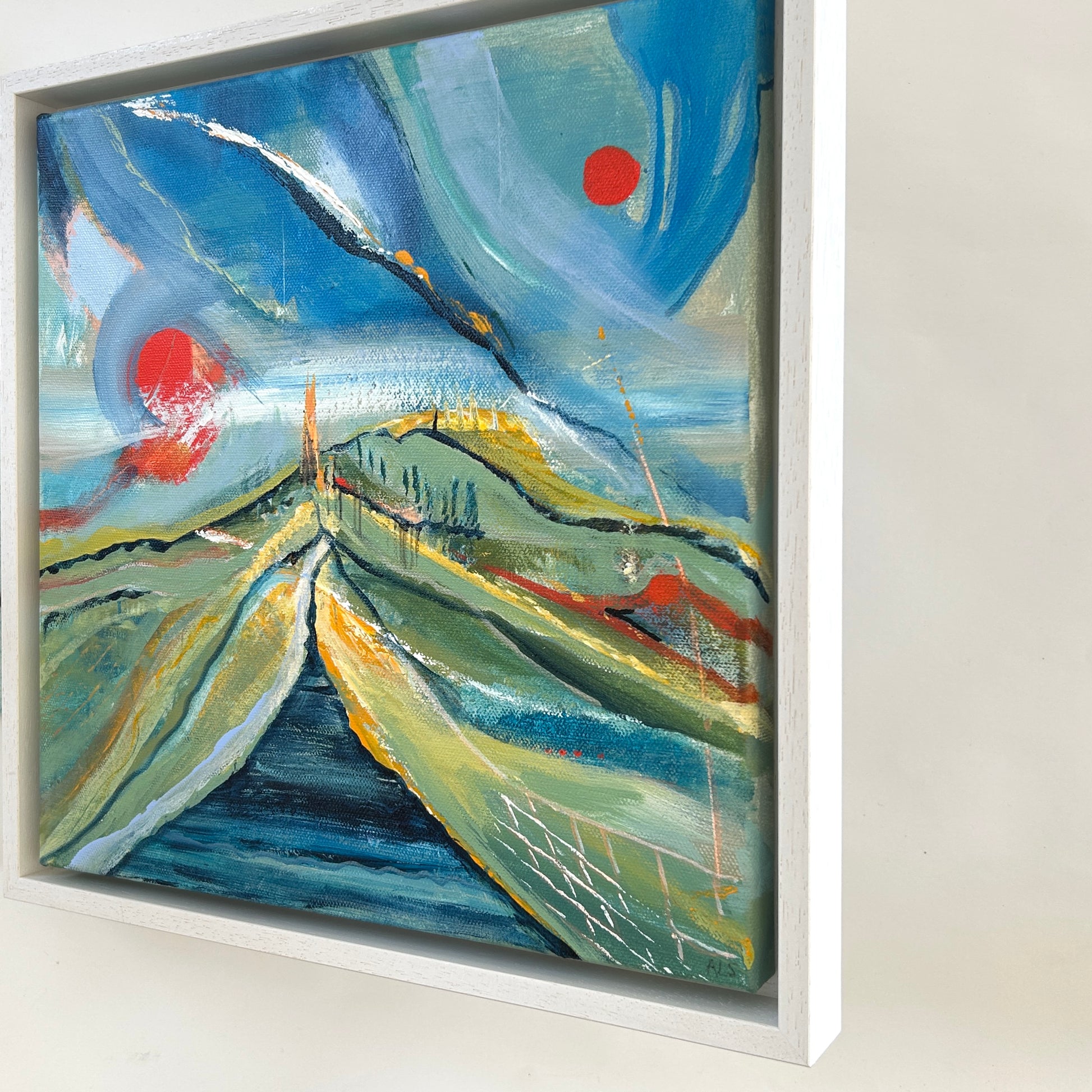 Let yourself be drawn into this sweeping abstracted landscape, where vibrant Devon green fields, stretch out towards a sun touched blue sky.