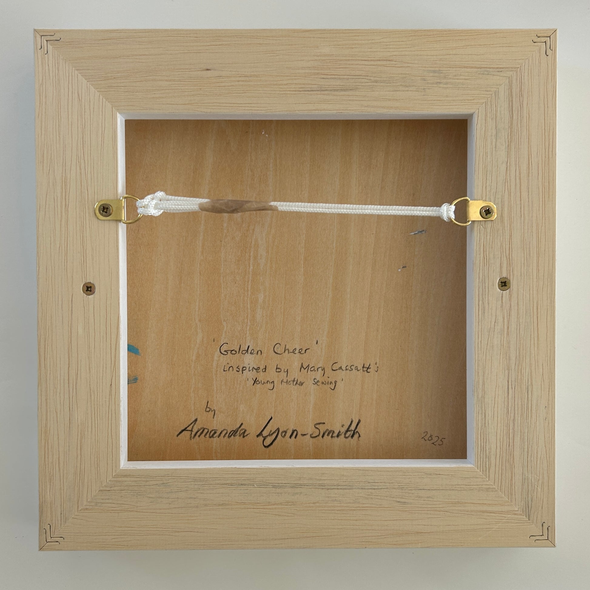 Golden Cheer is a warm and uplifting still life collage painting, featuring a vase bursting with glowing orange blooms against a richly textured aqua background. The little rustic red jug and spoon adds a nostalgic note, grounding the composition with a subtle narrative charm. Perfect for sunny kitchens, hallway gallery walls, or cosy cottage interiors, this artwork captures the simple joy of freshly picked flowers and the beauty of handmade textures. With its vibrant palette and painterly collage technique, Golden Cheer is an ideal piece for lovers of bright floral art, textured mixed media, and expressive contemporary home decor.