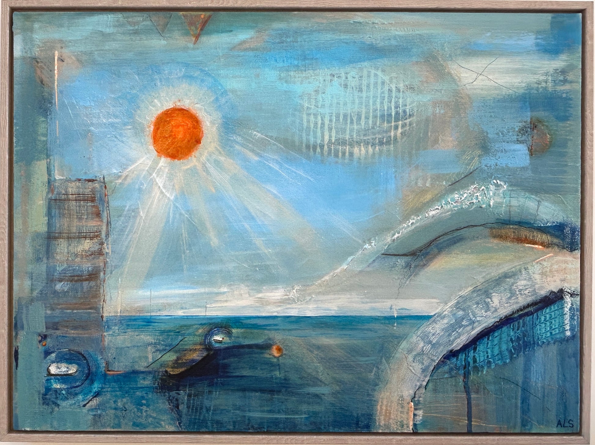 ‘Leaving Harbour’ is an evocative abstract coastal painting capturing the moment of departure—where calm waters meet the promise of open sea. With a radiant sun casting energy across layered textures of ocean blue and sun-washed neutrals, this mixed media seascape suggests movement, freedom, and a sense of bold transition. It’s a striking modern artwork that speaks to coastal living, travel and renewal, making it a perfect fit for contemporary interiors, light-filled hallways, or holiday home retreats. Ideal for collectors of expressive nautical art, it brings serenity and wanderlust into any space.